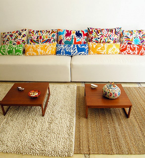 For ages I've been in love with this embroidered fabric. I've spotted it from time to time in chic houses or while traveling around, but I never knew what it was called. I'd hunt high and low, endlessly google, but no luck. That is, until I spent my Christmas holiday in Mexico City! I spent a crazy afternoon at the San Angel market (side note: if you ever make the trip to DF, it's definitely worth the 45 minute drive outside the city to see this market!) & found a handful of stands of women selling these gorgeous pieces. One of them was kind enough to clue me in -- they go by Otomi & are named for the indigenous Otomi people in several Mexican states east of Mexico City. Each piece is meticulously embroidered on cotton muslin & seems suited to just about anything you can think of. Clearly I'm late to the game because pinterest is a wash with gorgeous Otomi pieces. Just glad to be in on the secret.